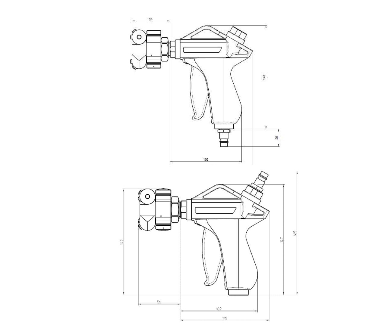 Die Düsenaufnahmen können unabhängig voneinander bis zu einem Gesamtwinkel von 195° die Reinigungsstellen exakt erreichen. Die CAG52 hat feste Winkelpositionen (je 2 mal 10, 20 und 30 Grad)