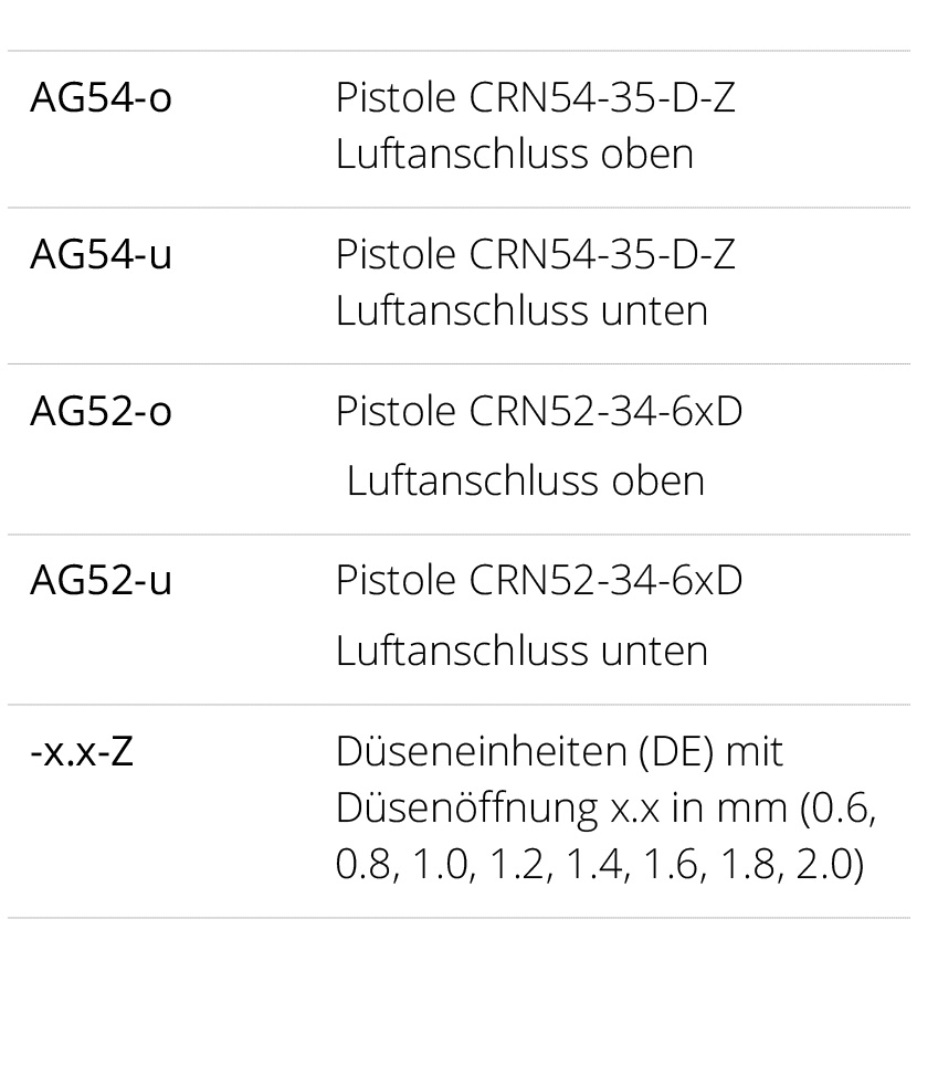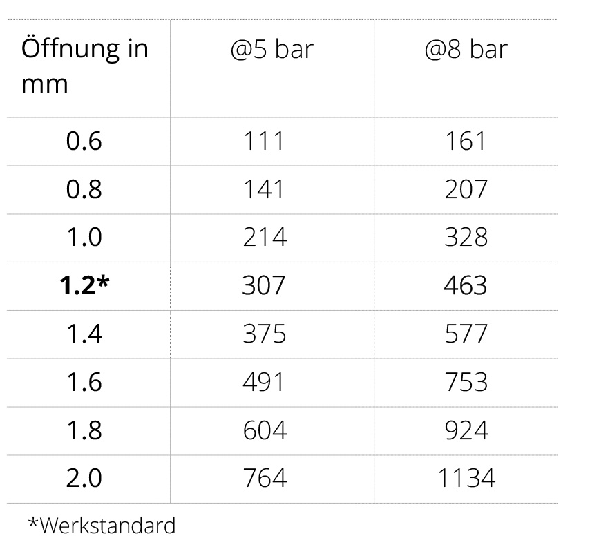Düseneinheiten von 0,6 bis 2,0 mm gewählt werden.