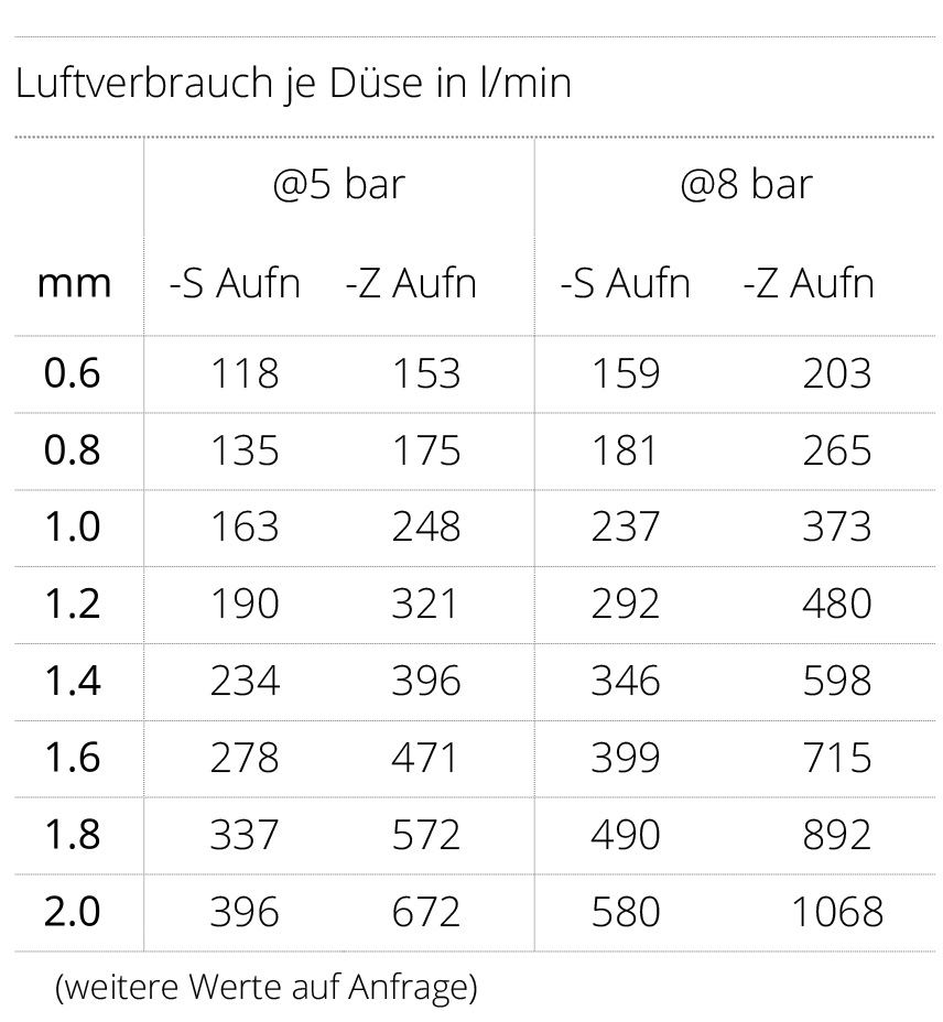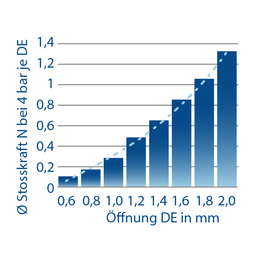 Zur Erhöhung der Wirkkraft können die Öffnungen der Düseneinheiten von 0,6 bis 2,0 mm gewählt werden.