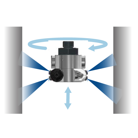 Die Düsenaufnahmen können unabhängig voneinander bis zu einem Gesamtwinkel von 195° die Reinigungsstellen exakt erreichen.
