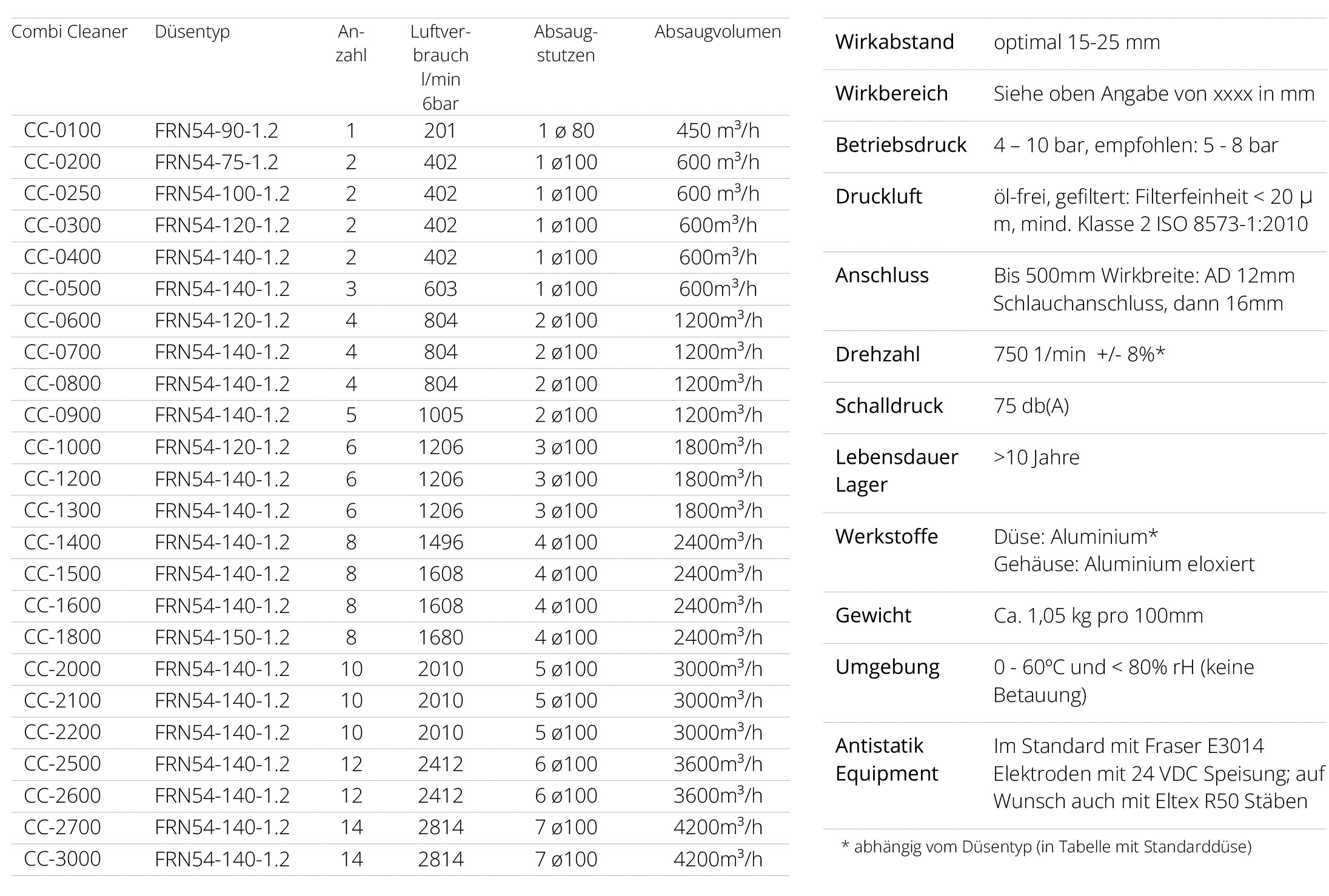 Zusammen mit einem Absaug- und Filtergerät stellt der CombiCleaner eine einsatzbereite Standard-Lösung dar. Bei Bedarf kann er optional durch Wahl anderer Düsen an spezifische Reinigungsprobleme angepasst werden.