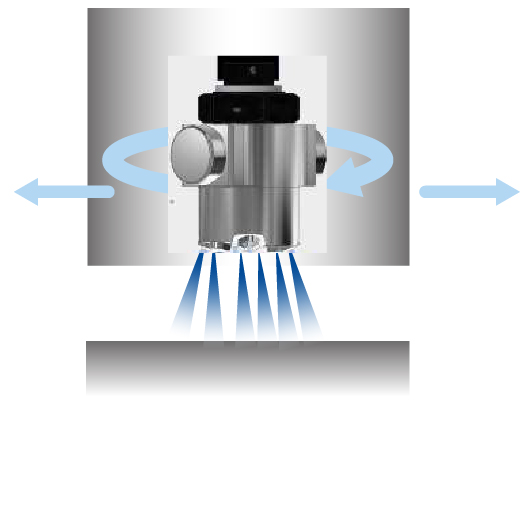 Düsenstrahlen mitgerissen und neutralisieren Material und/oder Schmutzpartikel und erleichtern so die Reinigung.